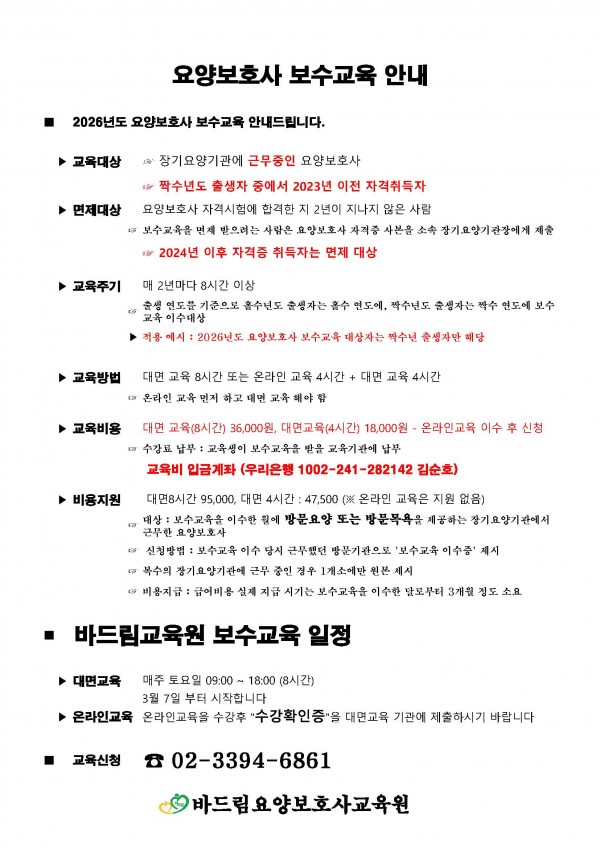 2026년 보수교육 안내드립니다.